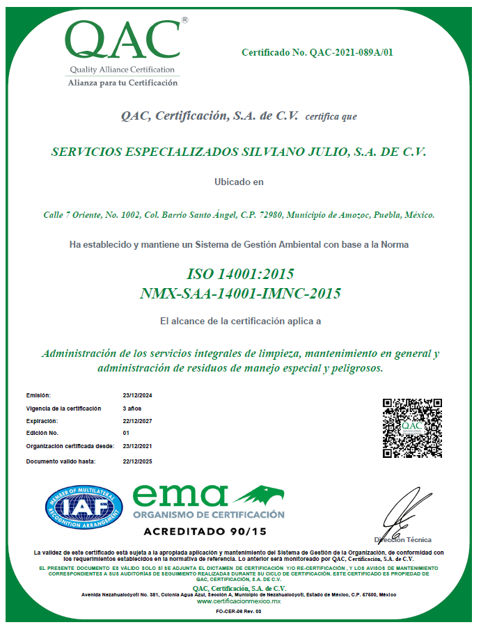Gestión de residuos peligrosos, manejo especial y scrap, junto con servicios de consultoría ambiental
